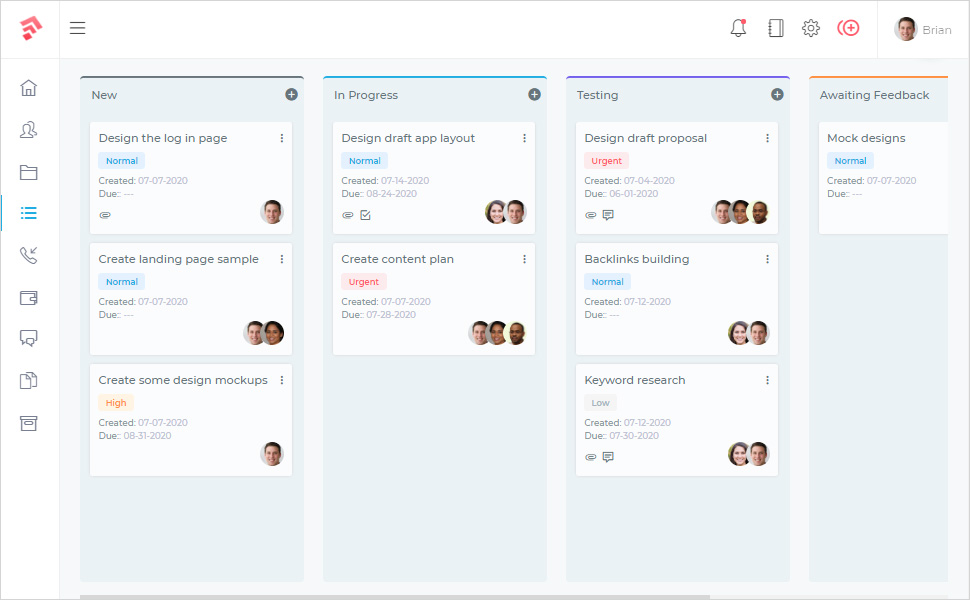 Our CRM gives you the right tools to manage, collaborate and complete your projects on time. Your clients will be happy and your team will be happy.- Easily see the progress of your project